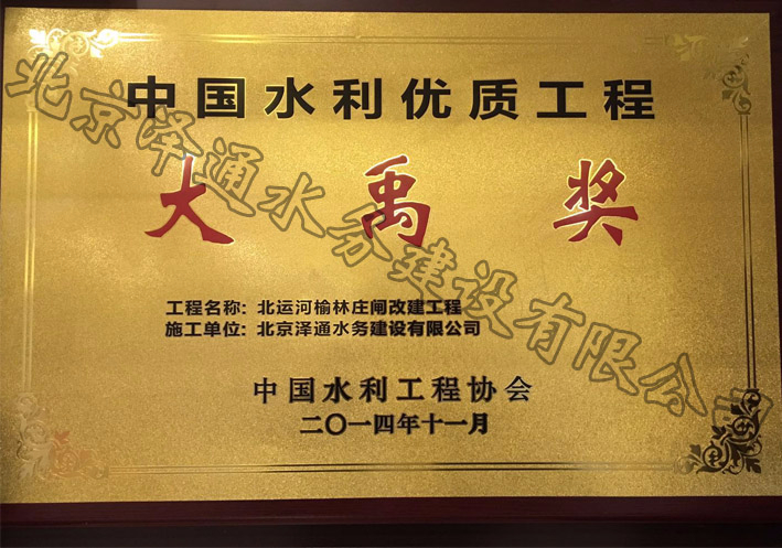 中國(guó)水利優(yōu)質(zhì)工程大禹獎(jiǎng)